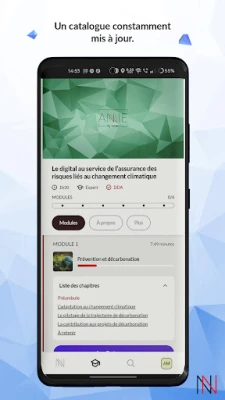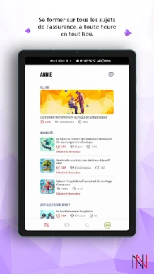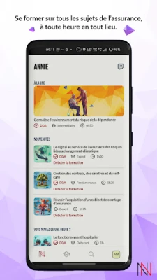 Személyes profiljában kényelmesen kezelheti az alkalmazás használatát, értesítéseket kaphat a követendő kurzusokról, hozzáférhet elvégzett képzéseinek igazolásaihoz, és áttekintheti felhasználási statisztikáit. Az ANNIE nem csupán egy platform, hanem egy bizonyítottan sikeres közösség: több mint 80 órányi képzési anyagot, 1000-nél is több fejezetet kínál, és 97%-os elégedettségi aránnyal büszkélkedhet. Minőségét a QUALIOPI tanúsítvány is garantálja a képzési tevékenységek kategóriájában. Lépjen be a szakmai kiválóság világába az ANNIE-vel, és váljon a biztosítási szektor igazi szakértőjévé!