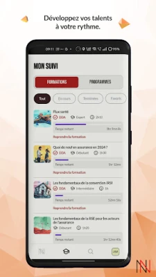A rugalmas tanulást helyezve előtérbe, az ANNIE segítségével saját tempójában haladhat, bárhol és bármikor – legyen szó telefonjáról vagy táblagépéről. A képzési programok videómodulok formájában érhetők el, amelyek lehetővé teszik az ismeretek kényelmes elsajátítását, majd gyakorló és értékelő QCM tesztekkel mérheti fel tudását. Kérdése merült fel? Tegye fel közvetlenül oktatójának az alkalmazáson keresztül, és személyre szabott videós választ kap. Emellett nyomon követheti fejlődését is egy dedikált oldalon, ahol minden elkezdett kurzusát megtalálja. Speciálisan kialakított programokkal az ANNIE abban is támogatja, hogy könnyedén teljesítse a DDA által előírt 15 órás kötelező képzést, profiljához igazítva az ütemtervet.