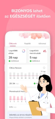 A Ciklus naptár elegánsan segít nyomon követni menstruációját, havi ciklusát és ovulációját. Pontosan előrejelzi a termékeny napokat. Ideális teherbeeséshez, fogamzásgátláshoz vagy a ciklus szabályosságának ellenőrzéséhez. Könnyedén rögzíti a tüneteket, és személyre szabott, pontos előrejelzéseket ad.