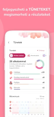 A **Period Calendar** túlmutat az egyszerű dátumkijelzésen: részletes betekintést nyújt a havi változásokba. Precízen rögzíti az eltérő ciklusokat, a testsúly ingadozását, az alap hőmérsékletet, a hangulati hullámzásokat, a vérzés jellegét és a különböző fizikai tüneteket. A korábbi adatok alapján személyre szabott, pontos előrejelzést biztosít a következő menstruáció, az ovuláció és a termékeny napok idejére. A naptár kezdőoldalán minden fontos információ azonnal elérhető, átlátható formában. Magánéleted védelme elsődleges: adatai PIN kóddal védettek, és a rendszer garantálja azok biztonságos mentését és visszaállítását, így sosem kell aggódnod az elvesztésük miatt.