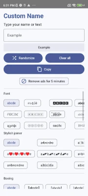 Az "Egyéni név - Stílusnév" alkalmazással bármilyen nevet vagy kifejezést stílusos szöveggé alakíthatsz egyetlen érintéssel. Kínál egyedi betűtípusokat, szimbólumokat és kreatív variációkat, hogy szöveged kitűnjön közösségi médiában, játékokban vagy chatben. Tedd egyedivé profilodat és üzeneteidet!