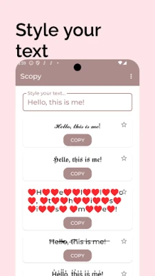 A Symbols to Copy a kreatív kifejezést gyerekjátékká teszi. Egyszerűen koppints a kívánt szimbólumra vagy a több mint 50 elérhető stílusos szövegopció egyikére, és azonnal a vágólapra kerül, készen a beillesztésre bármely alkalmazásba. A hatékony keresőfunkcióval pillanatok alatt megtalálhatod, amire szükséged van, míg a Kedvencek lap lehetővé teszi, hogy elmentse a leggyakrabban használt karaktereit a gyors hozzáférés érdekében. A letisztult, intuitív felületnek köszönhetően a navigáció zökkenőmentes, így Ön a tartalomalkotásra koncentrálhat.