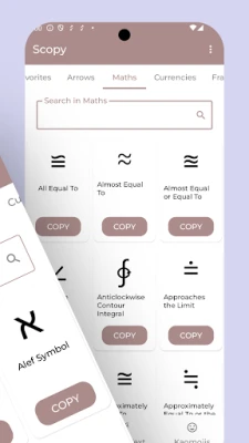 Legyen szó diákról, aki matematikai jeleket keres, tervezőről, aki munkájába szeretne egyedi elemeket vinni, vagy bárkiről, aki egyszerűen csak szeretné, ha üzenetei kiemelkednének, a Symbols to Copy ideális társ. Az alkalmazás a kényelmet, a kreativitást és a stílust ötvözi egyetlen, felhasználóbarát platformon. Ráadásul az elegáns sötét mód gondoskodik a kényelmes olvasási élményről még éjszakai használat során is, minimalizálva a szemfáradtságot. Engedd szabadjára a kreativitásodat és tedd felejthetetlenné kommunikációdat a Symbols to Copy eszközeivel!